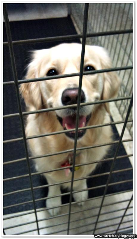 不知的布丁被關進籠子裡,卻還是隔著籠子對著我們傻