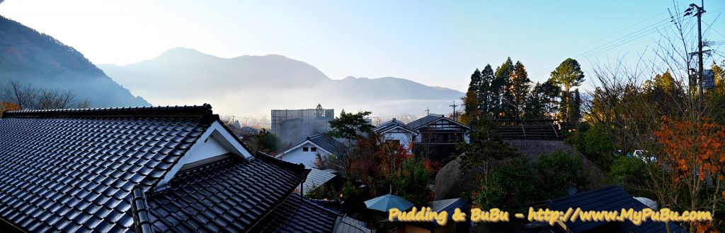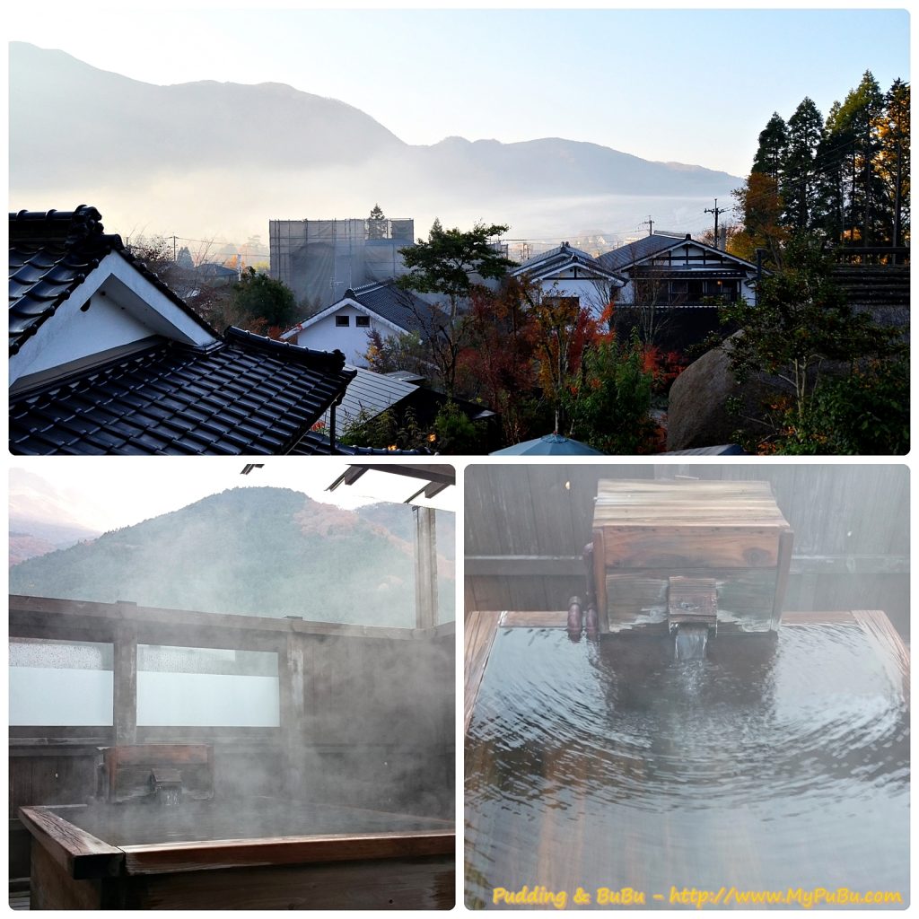 在湯布院的第四天早上,一早醒來從房間看出去的風景還帶點霧氣,沒有睡意的我只好獨自爬起來去泡湯,洗澡時的陣陣涼風真的有點刺骨,但到泡澡時這陣陣涼風又感覺很清爽,只不過這樣的冷熱文替真的很容易讓人感冒或是病得更嚴重;其實我那次整個行程都有點感冒。